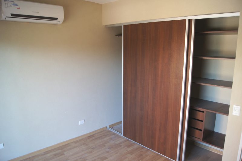 Ademas tiene un baño completo con duchador y un dormitorio con placard embutido hecho en madera laminada blanca con doble puerta corrediza de excelente calidad.
