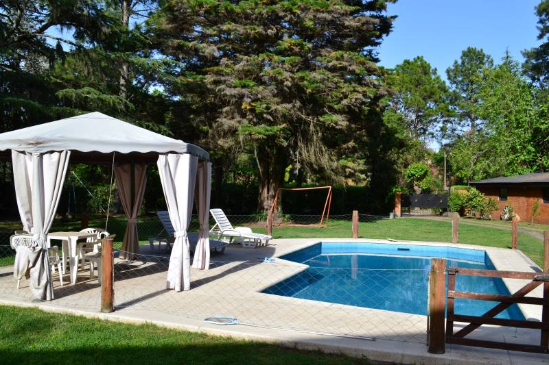 Ubicación central dentro del barrio. 376m2 cubiertos. 5 habitaciones, 4 baños, quincho y piscina. Terreno de 2.000m2 con excelente forestación.