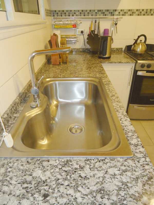 Cocina moderna con amplia ventana sobre la mesada, brindando mucha luz natural.